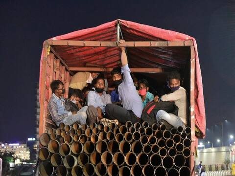 राजधानी दिल्ली के बदरपुर बॉर्डर पर मजदूरों की भीड़ जुटी हुई है. मजदूरों के पलायन के बीच मुजफ्फरनगर में कई मजदूर हादसे का शिकार हो चुके हैं. वहीं राजधानी दिल्ली में ऐसी तस्वीरें भी सामने आईं जहां पर मजदूर ट्रकों में ठूंस-ठूंस कर सफर करने को मजबूर हैं. मजदूरों का कहना है कि समाजिक दूरी देखें या घर जाएं. अगर कोई व्यवस्था कर दी जाएगी तो स्थिति सुधर जांए.