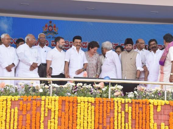 Lok Sabha Election 2024: कर्नाटक में सिद्धारमैया के शपथ ग्रहण समारोह में एनसीपी चीफ शरद पवार, बिहार के मुख्यमंत्री नीतीश कुमार और तमिलनाडु के सीएम एमके स्टालिन सहित 18 विपक्षी दल के नेता एक मंजर पर नजर आए. इसमें विपक्षी एकजुटता का संदेश देने का प्रयास किया गया.