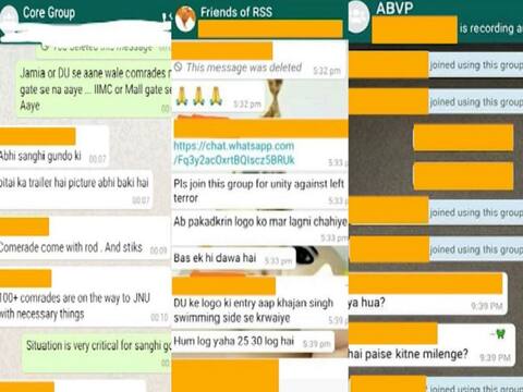 ऐसा नहीं है कि सिर्फ राइट विंग के वॉट्सएप ग्रुप की चैट ही वायरल है. लेफ्ट समर्थित छात्रों के एक ग्रुप की चैट भी वायरल है. इस ग्रुप का नाम है- कोर ग्रुप. एक ने लिखा- जामिया और डीयू से आने वाले कॉमरेड मेन गेट से ना आएं, आईआईएमसी या मॉल गेट से आए. जवाब आया- अभी संघी गुंडों की पिटाई का ट्रेलर, पिक्चर अभी बाकी है. तीसरे ने लिखा- कॉमरेड आप लोग रॉड और डंडे के साथ आएं. चौथे ने लिखा- 100 से ज्यादा कॉमरेड जरूरी सामान के साथ जेएनयू पहुंचने वाले हैं. फिर लिखा गया- संघी गुंडों के लिए हालात बहुत मुश्किल है.