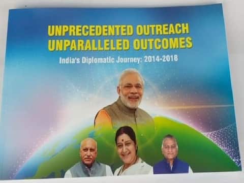 वाराणसी में आज से शुरू हुए प्रवासी भारतीय सम्मेलन 23 जनवरी तक चलेगा. इस दौरान जो भी प्रतिनिधि सम्मेलन में आ रहे हैं उन्हें एक किट दिया जा रहा है. किट में बुकलेट भी है जिसके कवर पर प्रधानमंत्री नरेंद्र मोदी, विदेश मंत्री सुषमा स्वराज, विदेश राज्य मंत्री वीके सिंह की तस्वीर छपी है. उनके साथ एमजे अकबर की भी फोटो है. फोटो के साथ उनका पद विदेश राज्य मंत्री लिखा गया है. बुकलेट में मोदी सरकार की कूटनीतिक सफलताओं का जिक्र किया गया है.