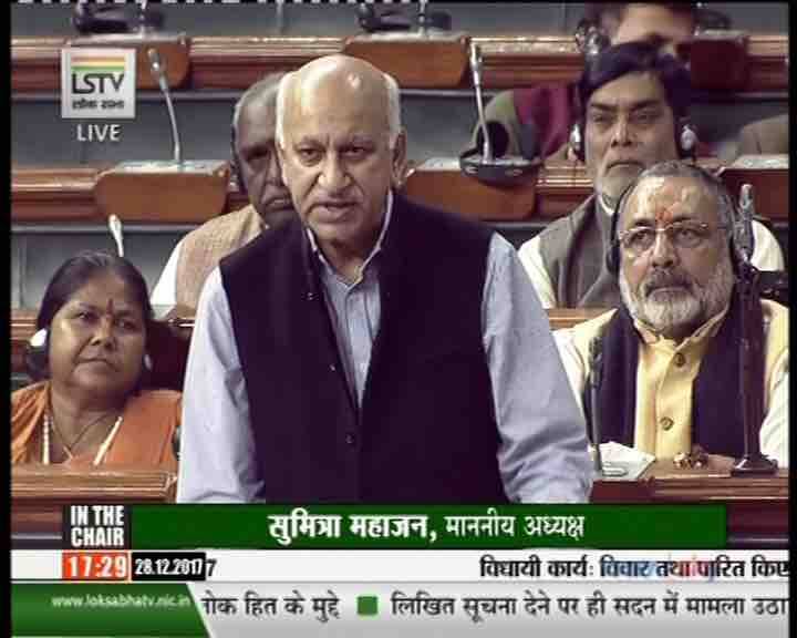 नई दिल्ली: सरकार ने आज लोकसभा में एक साथ तीन तलाक यानी तलाक-ए-बिद्दत से जुड़ा बिल पेश किया. लोकसभा में चर्चा तीन तलाक बिल पर चर्चा के दौरान विदेश राज्यमंत्री एम जे अकबर ने भी अपनी बात रखी. उन्होंने कहा कि 'ये कानून तलाक के खिलाफ नहीं है ये कानून एक साथ तीन तलाक के खिलाफ है.