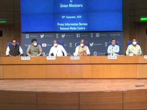नई दिल्लीः मोदी सरकार के छह कैबिनेट मंत्रियों ने आज एक प्रेस कॉन्फ्रेंस की जिसमें रक्षा मंत्री राजनाथ सिंह ने कहा कि जो कृषि विधेयक आज राज्यसभा से पास हुए हैं वो ऐतिहासिक हैं. किसानों को इसके जरिए वो आजादी मिलेगी जिसके वो हकदार हैं. इसके अलावा मुख्य रूप से उन्होंने विपक्ष के आज के हंगामे के ऊपर चर्चा की और इस कृत्य की निंदा की.