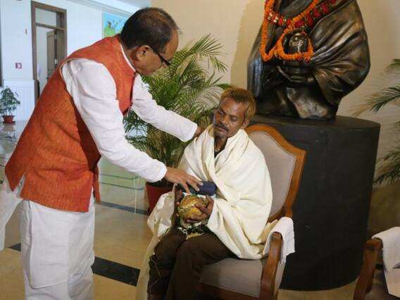 सीधी से करीब छह सौ किलोमीटर दूर भोपाल में मुख्यमंत्री निवास पर कुर्सी पर दशमत रावत (पीड़ित) को बैठाकर मध्य प्रदेश के मुख्यमंत्री शिवराज सिंह चौहान ने पैर धुला. माला पहनाई, शॉल और श्रीफल दिए. फिर उन्हें मीठा खिलाया और बैठकर नाश्ता भी कराया. दशमत पर बीजेपी के कार्यकर्ता और सीधी से बीजेपी विधायक केदार शुक्ला के प्रतिनिधि प्रवेश शुक्ला ने शराब के नशे में सिर पर पेशाब की थी.