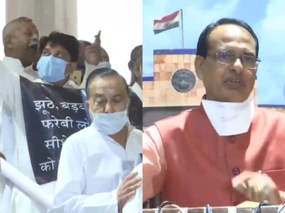 MP OBC Reservation: मध्य प्रदेश विधानसभा में ओबीसी आरक्षण पर मंगलवार को जोरदार हंगामा देखने को मिला. जिसके बाद विधानसभा को स्थगित करना पड़ा. कांग्रेस विधायकों ने ओबीसी को 27 फीसदी आरक्षण देने की मांग को लेकर विधानसभा में काले एप्रन पहनकर विरोध जताया. इसके बाद राज्य के मुख्यमंत्री शिवराज चौहान ने कांग्रेस पर निशाना साधते हुए पाखंड दिखाने का आरोप लगाया.