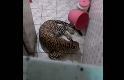 छात्र ने बताया कि जब वह अपने खाली घर में चल रहे कंस्ट्रक्शन से जुड़े काम से पहुंचा तो देखा कि एक तेंदुआ उनके बाउंड्री के अंदर धूम रहा है. जैसे ही वे पीछे हटे तेंदुआ कूदकर पड़ोसी के घर में घुस गया. रिपोर्ट्स के मुताबिक जब घर के मालिक को इस बारे में बताया गया तो पहले उसे विश्वास नहीं हुआ लेकिन फिर जैसे ही उसने अपना बाथरूम में जाकर देखा तो पाया कि तेंदुआ आराम से बाथरूम में छुपकर बैठा हुआ है. शख्स ने बताया कि उसके बाथरूम के बाहर कुंडी नहीं थी, इसलिए उसने बाहर से दरवाजे को कसकर बांध दिया और अलार्म भी लगा दिया. बाद में उसने लकड़ी के तख़्ते की मदद से दरवाजे को ब्लॉक कर दिया.
