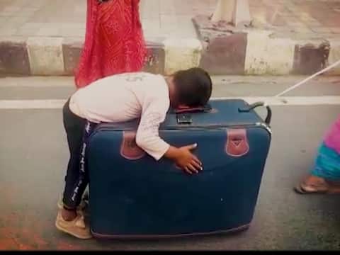 लॉकडाउन की वजह से मजदूरों का पैदल पलायन नहीं रुक रहा है. इसी दौरान मजदूरों की कठिनाईयों की कई ऐसी तस्वीरें सामने आई हैं, जो व्यवस्था पर सवाल उठाती हैं. दरअसल, झांसी जिले के महोबा के डेढ़ दर्जन के लगभग लोग पंजाब से पैदल अपने घर जाने के लिए निकले. इनके छोटे-छोटे बच्चों के पैरों में कदम भर चलने की भी ताकत नहीं बची तो मां ने सूटकेस पर बच्चे को लटका दिया और सूटकेस को रस्सी से खींचने लगीं. इसका वीडियो सोशल मीडिया पर वायरस हो गया.