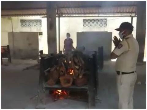 विरार के रहने वाले करीब 50 वर्षीय प्रमोद खारे नामक एक शख्स का पूरा परिवार लॉकडाउन के दौरान कोलकाता में था और इसी बीच प्रमोद खारे की हार्टअटैक से मौत हो गई. इसकी सूचना कोलकाता में रह रहे उनके परिवार को दी गई लेकिन लॉकडाउन की वजह से परिवार का कोई सदस्य विरार स्थित उनके घर तक नहीं पहुंच सका. ऐसे में बात आई की मृतक शख्स का अंतिम संस्कार कौन करे. यह सूचना जब पुलिस को दी गई तो विरार पुलिस ने वीडियो कॉन्फ्रेंसिंग के जरिए मृतक के परिवार वालों को अंतिम क्रिया विधि के साथ जोड़ा. ऐसे में सवाल यह था कि आखिर मृतक शरीर को का अंतिम संस्कार और मुखाग्नि कौन देगा इसके लिए विरार पुलिस के एक जवान सुभाष शिंदे ने हामी भरी और उसने पुलिस की वर्दी में ही मृतक शरीर को मुखाग्नि दी. अंतिम संस्कार की क्रिया को संपन्न किया. महाराष्ट्र पुलिस का यह कार्य लोगों में बेहद सराहा जा रहा है. विरार के रहने वाले लोगों ने पुलिस की इस मानवता को सलाम किया.
