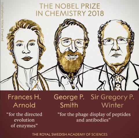 स्टॉकहोम: केमिस्ट्री के लिए साल 2018 के नोबेल पुरस्कार का एलान हो चुका है. अमेरिकी वैज्ञानिकों फ्रांसेस अर्नोल्ड, जार्ज स्मिथ और ब्रिटिश अनुसंधानकर्ता ग्रेगरी विंटर ने बुधवार को रसायन विज्ञान का नोबेल पुरस्कार जीता.