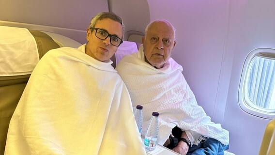 Farooq Abdullah Umrah: नेशनल कॉन्फ्रेन्स के अध्यक्ष और जम्मू-कश्मीर के पूर्व मुख्यमंत्री फारूक अब्दुल्ला और उनके बेटे उमर अब्दुल्ला 'उमराह' करने के लिए सऊदी अरब रवाना हो गए हैं. उमराह को हज का ही छोटा रूप माना जाता है. नेशनल कांफ्रेंस के उपाध्यक्ष उमर अब्दुल्ला ने सोशल मीडिया प्लेटफॉर्म पर विमान में उड़ान के दौरान अपने पिता के साथ ली गई तस्वीर पोस्ट की.