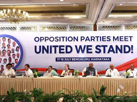 Opposition Meeting: लोकसभा चुनाव को देखते हुए बीजेपी के खिलाफ रणनीति बनाने में लगे विपक्षी दलों की बैठक मंगलवार (18 जुलाई) को बेंगुलरु में हुई. इसमें कांग्रेस अध्यक्ष मल्लिकार्जुन खरगे, पूर्व अध्यक्ष राहुल गांधी, पूर्व प्रेसिडेंट सोनिया गांधी और पश्चिम बंगाल की मुख्यमंत्री ममता बनर्जी सहित कई नेता शामिल हुए.