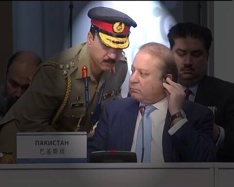 कजाकिस्तान में शंघाई सहयोग संगठन की राउंड टेबल कॉन्फ्रेंस में भाषण खत्म होते ही सेना का एक बड़ा अफसर नवाज शरीफ की तरफ लपका और कान में कुछ कहा. पांच सेकेंड के इस वीडियो ने दुनिया को बता दिया कि कैसे पाकिस्तान की सरकार वहां की सेना की कठपुतली है.