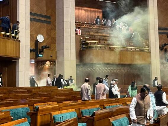 कैसे घटना हुई?घटना के दौरान बैठक का संचालन कर रहे पीठासीन सभापति अग्रवाल ने न्यूज एजेंसी पीटीआई से बात करते हुए कहा, ‘‘हमें ऐसा लगा कि जैसे एक व्यक्ति गिर गया. फिर देखा तो एक व्यक्ति कूद रहा था. फिर ध्यान में आया कि दोनों कूदे होंगे. एक व्यक्ति ने जूते से कुछ निकालकर धुआं फैलाया. इसके बाद इन्हें पकड़ लिया गया.''
