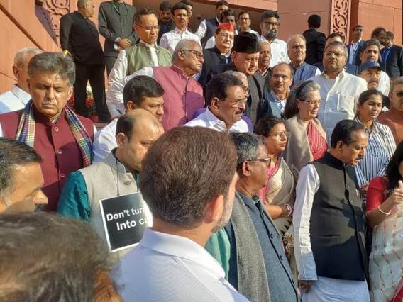 Ethics Committee Report: महुआ मोइत्रा के समर्थन में तमाम विपक्षी सांसद सांसद भवन के बाहर, सोनिया गांधी भी शामिल महुआ मोइत्रा के समर्थन में तमाम विपक्षी सांसद सांसद भवन के बाहर आ गए हैं. इसमें कांग्रेस की पूर्व अध्यक्ष सोनिया गांधी भी शामिल है.