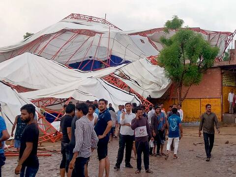 रविवार को यह यह हादसा उस समय हुआ जब बालोतरा कस्बे के पास जसोल धाम में एक स्कूल में कथा चल रही थी. तभी अंधड़ और बारिश के बीच पंडाल नीचे श्रद्धालुओं पर आ गिरा. सैंकड़ों श्रद्धालुओं को बाहर निकलने का मौका नहीं मिला और वह नीचे दब गए. बालोतरा सीमावर्ती बाड़मेर जिले का एक कस्बा है. बालोतरा के अतिरिक्त पुलिस अधीक्षक रतन लाल भार्गव ने कहा,' 14 व्यक्तियों की मौत हुई है और लगभग 50 अन्य घायल हुए हैं.' घायलों को विभिन्न अस्पतालों में भर्ती करवाया गया है.