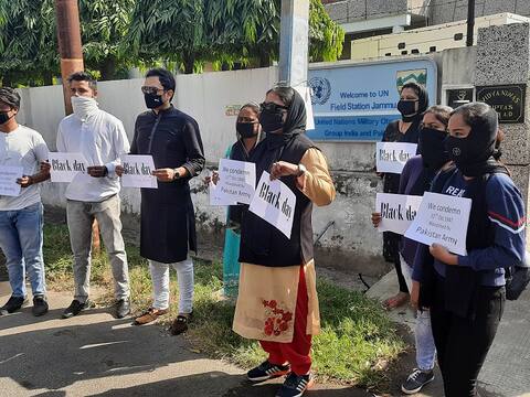 जम्मू: 22 अक्टूबर 1947 को पाकिस्तान के किए गए जम्मू कश्मीर पर हमले के खिलाफ गुरुवार को जम्मू में काला दिवस मनाया गया. इस अवसर पर लोगों ने यूएन दफ्तर का घेराव किया और यूएन से इस मानव अधिकार उल्लंघन का संज्ञान लेने की बात कही.