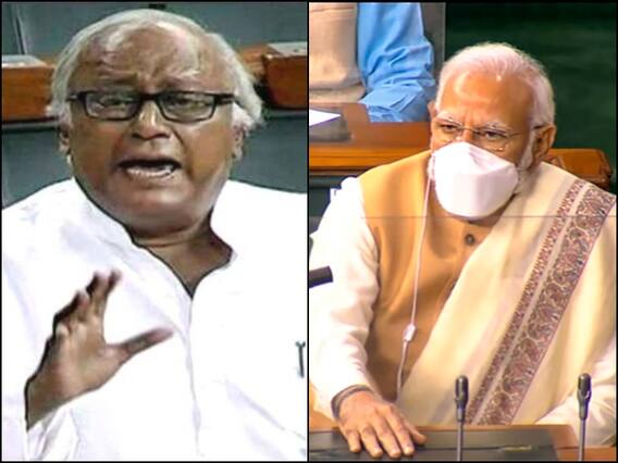 PM Modi Saugata Roy Conversation: प्रधानमंत्री नरेंद्र मोदी ने मंगलवार को लगातार चौथा आम बजट पेश करने पर वित्त मंत्री निर्मला सीतारमण को लोकसभा में बधाई दी और फिर उसके बाद विपक्षी खेमे में जाकर विपक्ष के नेताओं के साथ संवाद किया. बजट पेश होने के बाद सदन की कार्यवाही दिन भर के लिए स्थगित किए जाने के बाद पीएम मोदी को तृणमूल कांग्रेस के नेताओं सुदीप बंदोपाध्याय और सौगत रॉय से सदन के अंदर बात करते देखा गया.