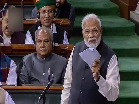 नई दिल्लीः आज संसद में प्रधानमंत्री नरेंद्र मोदी ने राष्ट्रपति के अभिभाषण पर धन्यवाद प्रस्ताव का जवाब दिया. अपने इस भाषण में पीएम मोदी ने सरकार की उपलब्धियों गिनाने से लेकर विपक्ष पर जोरदार हमले भी किए. महागठबंधन को महामिलावट बताते हुए इसे सत्ता के लिए बनाया गया गठबंधन बताते हुए पीएम मोदी ने एक-एक कर कई मुद्दों पर बात रखी.