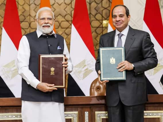 राष्ट्रपति अल-सीसी के निमंत्रण पर मिस्र का दौरा कर रहे पीएम मोदी ने उनके साथ बातचीत की. इस दौरान दोनों नेताओं ने क्षेत्र और दुनिया के महत्वपूर्ण मुद्दों पर भी चर्चा की. पीएम मोदी की यात्रा पर प्रेस कॉन्फ्रेंस करते हुए विदेश सचिव विनय क्वात्रा ने कहा कि चार सहमति पत्र और समझौतों पर हस्ताक्षर किए गए हैं, जिनमें भारत और मिस्र के बीच 'सर्वाधिक महत्वपूर्ण और ऐतिहासिक' रणनीतिक साझेदारी भी शामिल है.