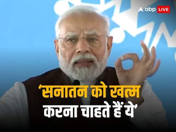 सनातन धर्म पर जमकर बोले पीएम मोदीपीएम मोदी ने आगे कहा कि जिस सनातन से प्रेरित होकर लोकमान्य तिलक ने भारत की स्वतंत्रता का बीड़ा उठाया, गणेश पूजन को इससे जोड़ा. आज उसी सनातन को I.N.D.I.A गठबंधन तहस नहस करना चाहता है. ये सनातन की ताकत थी कि फांसी पाने वाले वीर कहते थे कि अगला जन्म भारत माता की गोद में देना. सनातन संस्कृति संत रविदास की पहचान है. जो मां सबरी की पहचान है. ये लोग मिलकर अब उस सनातन को खंड खंड करना चाहते हैं. पीएम मोदी ने कहा कि देश के कोने कोने में हर सनातनी को इस देश को प्यार करने वाले को, इस देश के कोटि कोटि जनों को प्यार करने वालों को, हर किसी को सतर्क रहने की जरूरत है. सनातन को मिटाकर ये देश को फिर 1000 साल की गुलामी में धकेलना चाहते हैं, लेकिन हमें मिलकर ऐसी ताकतों को रोकना है.