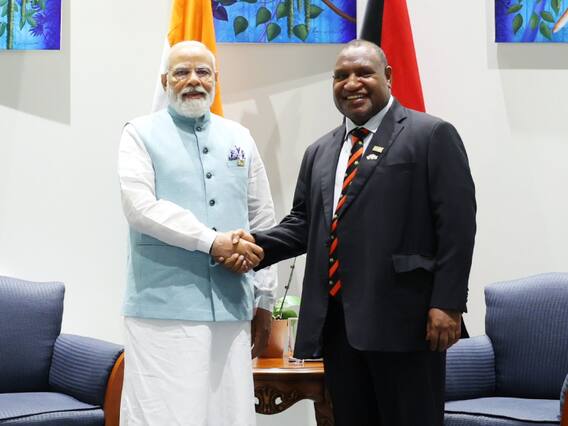 PM Modi Papua New Guinea Visit: प्रधानमंत्री नरेंद्र मोदी जापान में जी-7 और क्वाड बैठकों में शामिल होने के बाद रविवार (21 मई) को पापुआ न्यू गिनी पहुंचे. तीन देशों के अहम दौरे पर निकले पीएम नरेंद्र मोदी सोमवार (22 मई) को पापुआ न्यू गिनी में कई बड़े कार्यक्रमों में हिस्सा लेंगे. इस बीच जब पीएम मोदी के एयरपोर्ट पहुंचने पर पापुआ न्यू गिनी के प्रधानमंत्री जेम्स मारापे ने उनके पैर छूकर स्वागत किया. जिस पर पीएम मोदी ने जेम्स मारापे को गले लगाकर उनका अभिवादन किया.