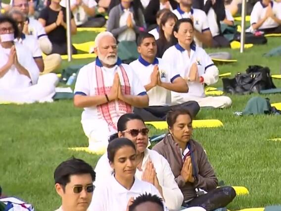योग कार्यक्रम में संयुक्त राष्ट्र महासभा (UNGA) के अध्यक्ष साबा कोरोसी, उप महासचिव अमीना मोहम्मद और कई अन्य राजनयिकों और संयुक्त राष्ट्र के अधिकारियों ने हिस्सा लिया. न्यूयॉर्क में योग दिवस के कार्यक्रम में शामिल होने से पहले पीएम मोदी ने बुधवार को वीडियो संदेश के माध्यम से मध्य प्रदेश के जबलपुर उपराष्ट्रपति जगदीप धनखड़ के नेतृत्व में मनाए गए उत्सव को संबोधित किया. पीएम मोदी ने कहा, ''भारत के आह्वान पर 180 से ज्यादा देशों का एक साथ आना ऐतिहासिक और अभूतपूर्व है.''