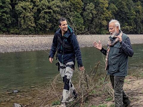 नई दिल्ली: प्रधानमंत्री नरेंद्र मोदी ने 'मैन वर्सेस वाइल्ड' में बियर ग्रिल्स के साथ मिलकर नदी के ठंडे पानी में जुगाड़ से बनी नाव पर सवारी की और इस एडवेंचर के माध्यम से प्रकृति संरक्षण जैसे मुद्दों को आगे बढ़ाया. डिस्कवरी चैनल के 'मैन वर्सेस वाइल्ड विद बियर ग्रिल्स एंड प्राइम मिनिस्टर मोदी' में दोनों ने उत्तराखंड के जिम कॉर्बेट राष्ट्रीय उद्यान के जंगलों में ठंड और बारिश की मार झेली. ग्रिल्स का कहना है कि प्रधानमंत्री मोदी बेहद ऊर्जावान और उत्साही हैं.