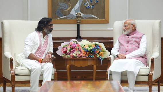 प्रधानमंत्री कार्यालय की तरफ से पीएम मोदी और झारखंड सीएम की मुलाकात की तस्वीरें भी शेयर की गई हैं. इस तस्वीर में देखा जा सकता है कि हेमंत सोरेन प्रधानमंत्री मोदी को फूलों का गुलदस्ता भेंट कर रहे हैं. एक अन्य तस्वीर में दोनों को बैठकर चर्चा करते हुए देखा जा सकता है. पीएमओ ने सोशल मीडिया प्लेटफॉर्म एक्स पर अपने आधिकारिक हैंडल से तस्वीर शेयर करते हुए लिखा, "झारखंड के मुख्यमंत्री ने पीएम मोदी से मुलाकात की."