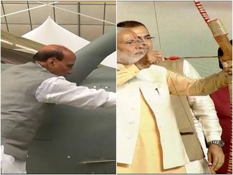 राजनाथ सिंह ने राफेल विमान पर सबसे पहले ऊं लिखा, फूल चढाए और नारियल अर्पित किया. इसके बाद उन्होंने राफेल को रक्षा सूत्र भी बांधा. राफेल के पहियों के नीचे नींबू भी रखे गए थे. आपको बता दें कि भारतीय परंपरा में शस्त्र पूजा का बहुत महत्व है. राफेल की गिनती दुनिया के सबसे ताकतवर हथियारों में की जाती है.