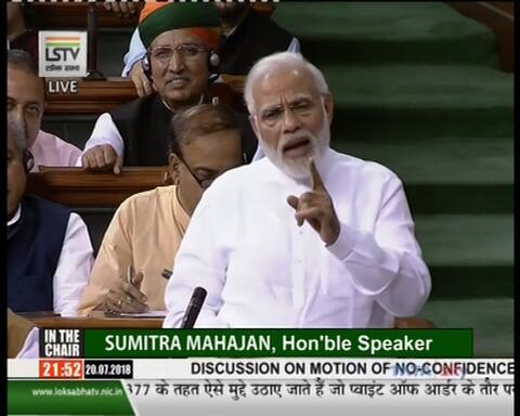 प्रधानमंत्री ने कहा, ''इस प्रस्ताव के बहाने अपने कुनबे को बिखरने से बचाने की चिंता बची है. मेरा कांग्रेस से सवाल है अगर आपको अपने संभावित साथियों की परीक्षा लेनी है तो जरूर लीजिए लेकिन अविश्वास प्रस्ताव का बहाना तो ना बनाइए. जितना अविश्वास कांग्रेस सरकार पर करती कम से कम उतना विश्वास तो अपने साथियों पर करिए. हम यहां इसलिए हैं क्योंकि हमारे पास संख्याबल है और सवा सौ करोड़ भारतीयों का आशीर्वाद है. अपने स्वार्थ के लिए जनता के आशीर्वाद पर संदेह ना करें.''