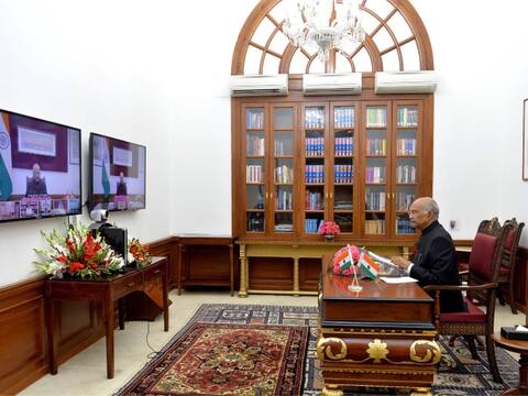नई दिल्ली: राष्ट्रपति रामनाथ कोविंद ने आज दूसरी बार सभी राज्यपालों और उपराज्यपालों के साथ कोरोना वायरस से लड़ने की तैयारियों पर वीडियो कॉन्फ्रेंसिंग के ज़रिए समीक्षा बैठक की. इससे पहले 27 मार्च को भी ऐसी ही बैठक हुई थी.