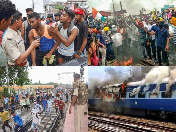 Protest on Agnipath Sceheme: सेना में नई भर्ती स्कीम 'अग्निपथ' के विरोध प्रदर्शन की लपटें अब बिहार से शुरू होकर तेलंगाना तक पहुंच गई है. लगातार तीसरे दिन उग्र प्रदर्शन हो रहा है और अब तक सुबह से उपद्रवियों ने पांच ट्रेनों में आग लगी दी. तेलंगाना के सिकंदराबाद में प्रदर्शन देखते हुई देखते हिंसा में बदल गई. यहां पर प्रदर्शनकारियों ने ट्रेन में आग लगी दी और अग्निपथ स्कीम के खिलाप स्टेशन पर पत्थरबाजी भी की. इससे पहल, बिहार के समस्तीपुर में जम्मूतवी-गुवाहाटी एक्सप्रेस ट्रेन में उपद्रवियों ने आग लगा दी. ट्रेन की दो बोगियां जलकर खा हो गई. यह हाजीपुर-बरौनी रेलखंड के मोहिउद्दीननगर स्टेशन की घटना है. जबकि दूसरी तरफ दरभंगा से नई दिल्ली जा रही बिहार संपर्क क्रांति एक्सप्रेस ट्रेन में भी उपद्रवियों ने आग लगा दी. ट्रेन की चार बोगी जलकर खाक हो गई. समस्तीपुर मुजफ्फरपुर रेल खंड के भोला टॉकीज रेलवे गुमती के पास के उपद्रवियों ने ट्रेन में जमकर तोड़फोड़ और लूटपाट की.