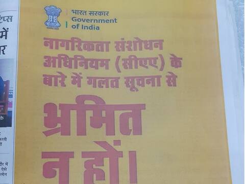 विज्ञापन में कहा गया है, ''नागरिकता संशोधन अधिनियम (सीसीए) के बारे में गलत सूचना से भ्रमित न हों. अधिनियम से जुड़ी कई प्रकार की अफवाहें और गलत सूचना फैलाई जा रही हैं, लेकिन ये किसी भी तरह से सच नहीं है. सीएए से जुड़े वास्तविक तथ्य इस प्रकार हैं.''