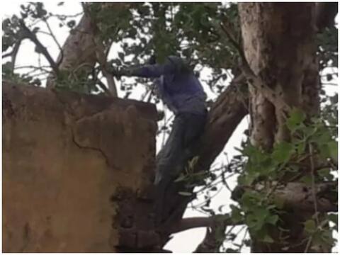 दरअसल, मामला धौलापुर जिले के भदौरिया पाड़ा मौहल्ले का है जहां ल्होरेराम नाम का युवक 50 फीट ऊंचे पीपल के पेड़ पर चढ़ गया. ल्हेरेराम ना केवल पेड़ पर चढ़ा बल्कि उसने अपने दोनों पैरों को सुआपी से बांध लिया था. ल्हेरेराम को ऐसा करते देख लोगों की भीड़ जुट गई और लोगों ने बिना देरी किए पुलिस को सूचना दी.