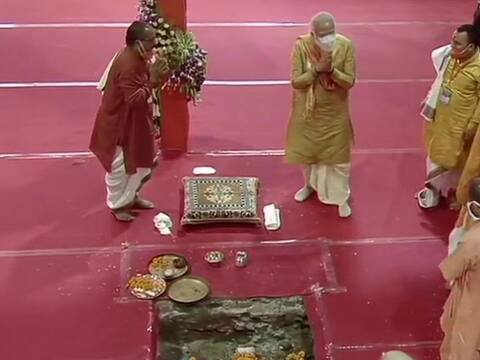 पीएम मोदी ने इससे पहले रामलला के दर्शन किए और उनके चरणों में लेटकर शीश नवाया. इसके बाद पीएम मोदी ने पंडाल में बैठकर भूमि पूजन किया. इस दौरान सभी मौजूद पंडित भूमि पूजन के लिए मंत्र उचारण करते रहे. पीएम मोदी के साथ इस दौरान यूपी की राज्यपाल आनंदीबेन पटेल, यूपी के सीएम योगी आदित्यनाथ, राष्ट्रीय स्वयंसेवक संघ के सरसंघचालक मोहन भागवत और राम मंदिर ट्रस्ट के अध्यक्ष महंत नृत्यगोपाल दास भी बैठे थे.