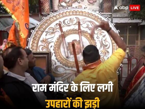 Ram Mandir Inauguration Update: राम मंदिर प्राण प्रतिष्ठा कार्यक्रम की धूम सिर्फ देश ही नहीं बल्कि विदेशों में भी है. जैसे-जैसे इस कार्यक्रम की तारीख नजदीक आते जा रही है वैसे-वैसे भगवान श्रीराम के चरणों में चढ़ने वालों उपहारों की झड़ी लगती जा रही है. कहीं से 2100 किलो का घंटा आया है तो कहीं से 108 मीटर लंबी अगरबत्ती आई. अब गोल्ड कोटेड नगाड़ा अयोध्या पहुंचा है.