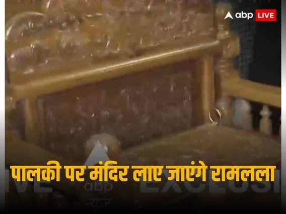 महज चार दिनों में तैयार की गई पालकीएबीपी न्यूज ने इस पालकी के संबंध में एक पड़ताल की है. इसे बनाने वाले शरद बताते हैं कि महज चार दिनों में इस पालकी का निर्माण पूरा किया गया है. इसे जबरदस्त नक्कासियों से सजाया गया है जिस पर सनातनी चिह्न उकेरे गए हैं. लकड़ी से बनी इस पालकी को सोने के रंग से रंगा गया है. आखिर क्यों न रंगा जाए? इस पर रामलाल को सवारी जो करनी है.
