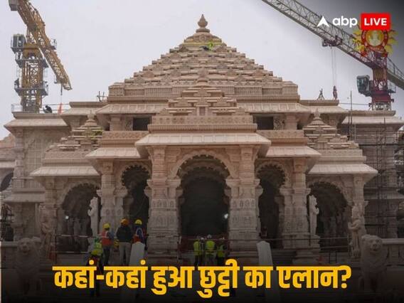 - राजस्थान: प्राण प्रतिष्ठा के दिन राजस्थान में हाफ डे का ऐलान किया गया है. इस दिन सरकारी कार्यालयों में आधे दिन की छुट्टी होगी.