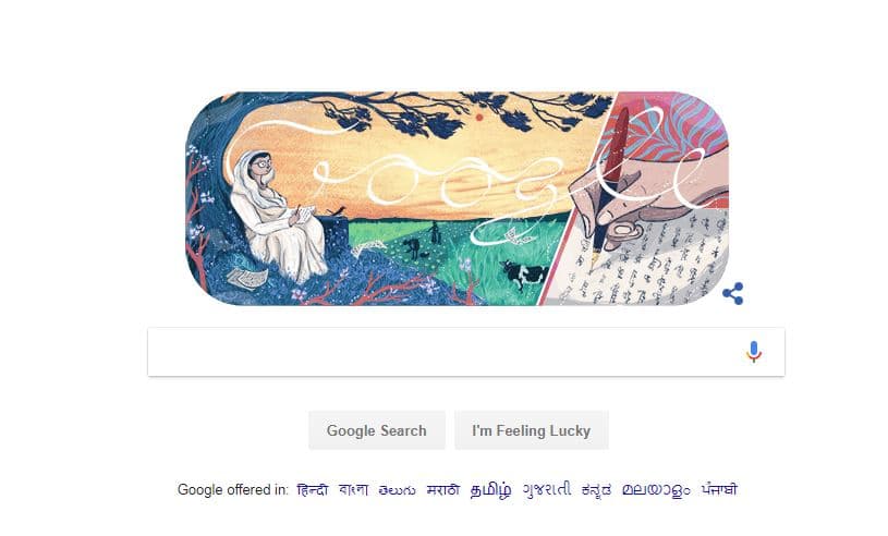 गेस्ट कलाकार सोनाली जोहरा ने महादेवी वर्मा का डूडल तैयार किया है, जिसमें महादेवी वर्मा पेड़ की छांव में कुछ लिखते हुए नजर आ रही हैं. महादेवी वर्मा का जन्म 26 मार्च 1907 को उत्तर प्रदेश के फरु खाबाद में एक रुढ़िवादी परिवार में हुआ था.