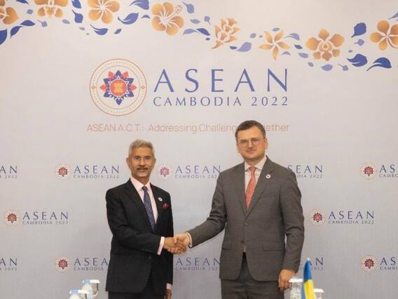 ASEAN Cambodia 2022: भारत के विदेश मंत्री एस जयशंकर ने शनिवार (12 नवंबर) को यूक्रेन के विदेश मंत्री दिमित्री कलेवा के साथ बैठक की. जहां दोनों नेताओं ने क्षेत्र में हालिया घटनाक्रम, परमाणु चिंताओं और यूक्रेन के खिलाफ रूस के युद्ध को खत्म करने के तरीकों पर चर्चा की. जयशंकर ने कंबोडिया की राजधानी फोनों पेन्ह में आसियान-भारत शिखर सम्मेलन से अलग दिमित्री कलेवा से मुलाकात की. उन्होंने ट्वीट किया, यूक्रेन के विदेश मंत्री दिमित्री कलेवा से मिलकर खुशी हुई. हमारी चर्चाओं में हालिया घटनाक्रम के संघर्ष, अनाज निर्यात की पहल और परमाणु चिंताएं शामिल थी.