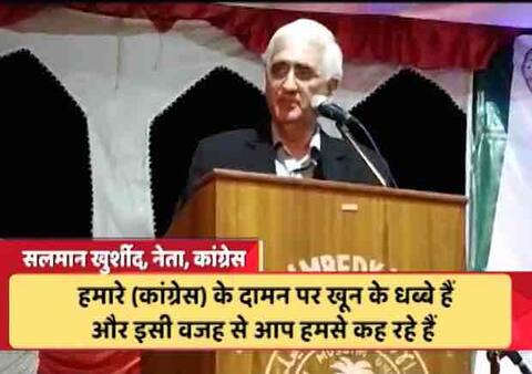अलीगढ़ मुस्लिम यूनिवर्सिटी के पूर्व छात्र आमिर मिंटोई ने पूछा था कि कांग्रेस के राज में मुसलमानों पर जो अत्याचार हुए. उसपर मुसलमानों के खून के इतने धब्बे हैं आप क्यां कहेंगे तो खुर्शीद ने कहा कि हां कांग्रेस के दामन पर खून के धब्बे हैं.