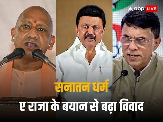 Sanatan Dharma: सनातन धर्म को लेकर तमिलनाडु के मुख्यमंत्री एमके स्टालिन के बेटे उदयनिधि स्टालिन की गई टिप्पणी से बढ़ा विवाद गुरुवार (7 सितंबर) को भी जारी रहा. इस बीच डीएमके के सांसद ए राजा के सनातन धर्म पर दिए गए बयान ने सियासी पारा और बढ़ा दिया. बीजेपी ने दोनों नेताओं के बयानों का जिक्र करते हुए विपक्षी गठबंधन 'इंडिया' को निशाने पर लिया. वहीं डीएमके चीफ एमके स्टालिन ने विवाद के लिए बीजेपी को घेरा. बड़ी बातें-