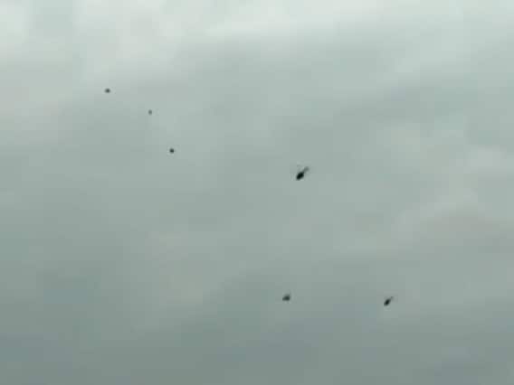 कांग्रेस ने एक वीडियो साझा किया जिसमें गणवरम से एमआई-17 एस हेलीकॉप्टर के गांव के ऊपर से गुजरते समय काले गुब्बारे हवा में उड़ते हुए दिखाई दे रहे हैं. जब दो हेलीकॉप्टर वहां से गुजर रहे थे तब गुब्बारे आसमान में काफी ऊपर तक पहुंच गए थे. हालांकि यह स्पष्ट नहीं हो पाया है कि क्या वे हेलीकॉप्टरों के करीब पहुंच गए थे.
