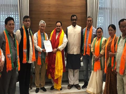 सिक्किम डेमोक्रेटिक फ्रंट (SDF) के 10 विधायक बीजेपी कार्यकारी अध्यक्ष जेपी नड्डा और बीजेपी महासचिव राम माधव की मौजूदगी में पार्टी में शामिल हुए. 10 विधायकों के बीजेपी में शामिल होने के बाद बीजेपी महासचिव राम माधव ने सहा कि सभी 10 विधायकों का स्वागत करता हूं. 10 विधायकों के पार्टी में शामिल होने के साथ ही अब सिक्किम में बीजेपी ने सरकार बनाने की कवायद शुरू कर दी है.