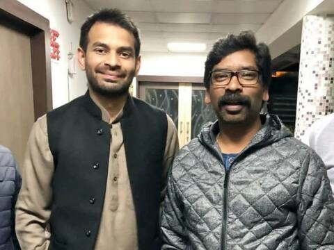 पटना: झारखंड विधानसभा चुनाव के रुझान अब धीरे-धीरे नतीजों में बदलने लगे हैं. अब तक बनी तस्वीर से महागठबंधन की सरकार बननी लगभग तय है. झारखंड में बीजेपी की हार से आरजेडी उत्साहित नज़र आ रही है. अब तेजप्रताप यादव का बयान भी सामने आया है. तेजप्रताप यादव ने अपने ट्वीट करके महागठबंधन के सभी प्रत्याशियों को बधाई दी है. तेजप्रताप ने ट्विवटर पर गठबंधन से सीएम पद के उम्मीदवार हेमंत सोरेन के साथ अपनी तस्वीर भी शेयर की है.
