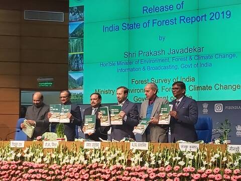 इंडिया स्टेट ऑफ फारेस्ट रिपोर्ट 2019 में जम्मू-कश्मीर और लद्दाख पर दिए समेकित आंकलन में जंगलों के दायरे में हुई बढ़ोतरी दिखाई है. रिपोर्ट के अनुसार जम्मू-कश्मीर (जम्मू-कश्मीर और लद्दाख समेत) के वन आच्छादित क्षेत्र में पिछले आंकलन के मुकाबले 348 वर्ग किमी की बढ़ोतरी हुई है. इसमें पाक अधिकृत क्षेत्र के वन आंकलन के बारे में पूछे जाने पर पर्यावरण मंत्री प्रकाश जावड़ेकर ने कहा कि सैटेलाइट कोई सीमाएं नहीं मानता. हालांकि रिपोर्ट के अनुसार पीओके के मीरपुर जैसे इलाक़ों के वन क्षेत्र में ISFR2017 के मुकाबले 12 फीसद से ज़्यादा की कमी भी हुई है.