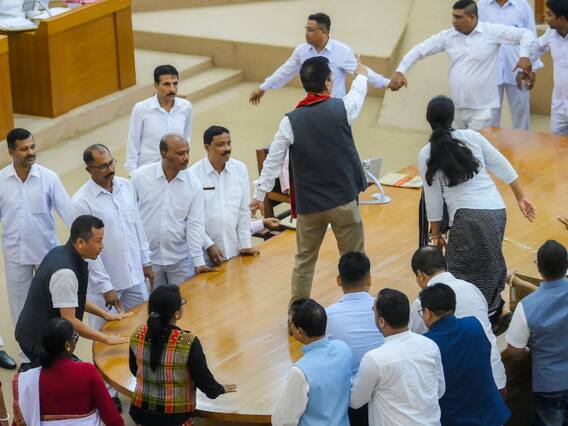 Tripura Assembly Ruckus: त्रिपुरा में पांच विधायकों के निलंबन और सत्तारूढ़ बीजेपी के एक विधायक के सदन में कथित रूप से अश्लील फिल्म देखने के मामले पर चर्चा की अनुमति नहीं दिए जाने पर शुक्रवार (7 जुलाई) को विधानसभा में जमकर हंगामा हुआ.