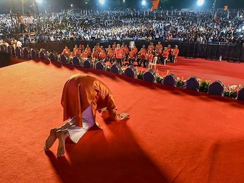 मुंबई: उद्धव ठाकरे ने मुख्यमंत्री पद की शपथ लेने के बाद दंडवत होकर शिवाजी पार्क में मौजूद लोगों का अभिवादन किया. उद्धव ठाकरे की इस तस्वीर को देखकर साल 2014 का वो दृश्य याद आ गया जब नरेंद्र मोदी बतौर प्रधानमंत्री पहली बार संसद पहुंचे थे. लोकसभा में दाखिल होने से पहले पीएम मोदी ने वहां की सीढ़ी पर अपना माथा टेका था.
