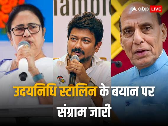 Udhayanidhi Stalin Sanatana Dharma Row: तमिलनाडु के मुख्यमंत्री एमके स्टालिन के बेटे और मंत्री उदयनिधि स्टालिन के बयान को लेकर सोमवार (4 सितंबर) को भी घमासान जारी रहा. इस मामले पर विपक्षी गठबंधन इंडिया (I.N.D.I.A) के नेताओं की अलग-अलग राय सामने आई. जबकि बीजेपी (BJP) ने इस मुद्दे को उठाते हुए विपक्ष पर अपना हमला जारी रखा. वहीं उदयनिधि अपने बयान पर कायम रहे.