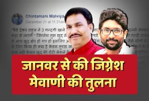 उज्जैन: प्रधानमंत्री नरेंद्र मोदी पर गुजरात के नवनिर्वाचित विधायक जिग्नेश मेवाणी के बयान पर उठा विवाद थम नहीं रहा है. अब उज्जैन से बीजेपी सांसद चिंतामणि मालवीय ने अपनी फेसबुक पोस्ट से जिग्नेश मेवाणी को जवाब दिया है, लेकिन इस पोस्ट में बीजेपी सांसद ने मेवाणी की तुलना जानवर से कर दी. जीत ने बिगाड़े जिग्नेश मेवाणी के बोल! पीएम मोदी की दी रिटायर होने की नसीहत बीजेपी सांसद चिंतामणि मालवीय ने अपनी पोस्ट में लिखा है, ‘’मोदी जी से तो तुम लोगों की तुलना भी नहीं की जा सकती है. क्योंकि सूर्य से काकरोचों की तुलना नहीं की जा सकती है.’’ इतना ही नहीं जिग्नेश के बहाने बीजेपी सांसद ने कांग्रेस अध्यक्ष राहुल गांधी पर भी हमला बोला. उन्होंने लिखा, ‘’पैसे देकर राहुल गांधी ने तीन गंदगी खाने और फैलाने वाले जानवर खरीद लिए पर इनमें संस्कार कहां से लाएंगे?’’ पोस्ट से साफ है कि उनके निशाने पर राहुल-जिग्नेश के अलावा अल्पेश ठाकोर और हार्दिक पटेल भी थे. जिसने सहयोग के दम पर गुजरात में कांग्रेस के अच्छे प्रदर्शन का दावा किया जा रहा था. दरअसल गुजरात में विधायक बनने के बाद जिग्नेश ने पीएम मोदी को रिटायरमेंट लेने की सलाह दी थी. मेवाणी ने कहा था, ‘’चुनाव में भले ही बीजेपी जीती हो, लेकिन हमारी नैतिक जीत हुई है. मोदी जी को हिमालय पर चले जाना चाहिए और वहां जाकर हड्डियां गलाना चाहिए.’’ इस बयान के बाद जिग्नेश बीजेपी नेताओं के निशाने पर आ गए थे. साथ ही पीएम मोदी पर टिप्पणी को लेकर उनकी सोच पर सवाल उठाए गए थे, लेकिन अब बीजेपी के ही सांसद की इस पोस्ट ने पार्टी को बैकफुट पर ला दिया है.