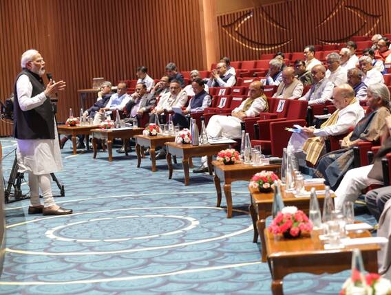 Council of Ministers Meeting: News: दिल्ली के प्रगति मैदान (Pragati Maidan) में सोमवार (3 जुलाई) को मंत्रिपरिषद की बैठक हुई. पीएम मोदी (PM Modi) की अध्यक्षता में हुई ये मीटिंग करीब 4 घंटे तक चली. जिसमें गृह मंत्री अमित शाह, नितिन गडकरी, अनुराग ठाकुर, जी किशन रेड्डी समेत कई मंत्री मौजूद रहे. बीजेपी (BJP) के शीर्ष नेतृत्व की कई दौर की बैठकों के बाद केंद्रीय मंत्रिमंडल में फेरबदल की संभावना को लेकर जारी चर्चाओं के बीच ये बैठक हुई है.